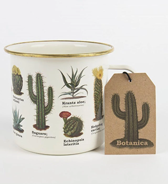 Embrace the outdoors and show everyone your love of cacti and succulents with the Botanica enamel mug!