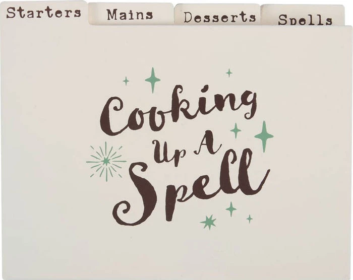 Every kitchen witch needs a safe place to keep her special recipes and favourite spells. This wooden recipe box features an engraved cauldron illustration with ‘Kitchen Witch – Spells and Recipes’ text and MDF inserts for keeping Starters, Mains, Desserts and Spells tidy and organised. Ideal for any witch that loves a homemade meal!
