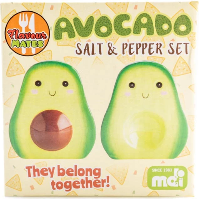 Cute ceramic salt and pepper shakers shaped like two halves of an adorably deliciousΒ avocado! One half fits perfectly into the hollow on the other half. Put them together to create a whole avocado!