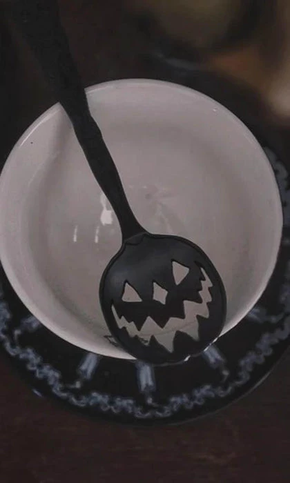 Haunted Hallows. The official Jack-O-Lantern of Lively Ghosts. This 6″ spoon features intricate design-work on the handle — including crescent moons and a Victorian-inspired filigree — as well as a cutout jack-o-lantern design for the base. Perfect for mixing libations such as tea, cocktails, poison, and the like.