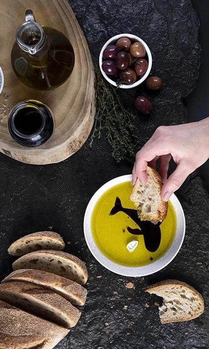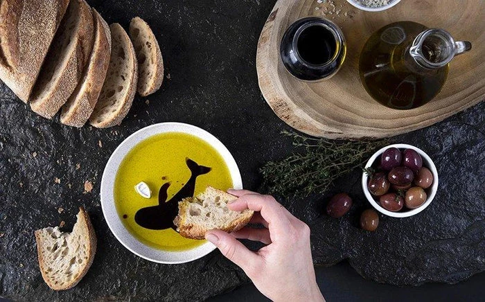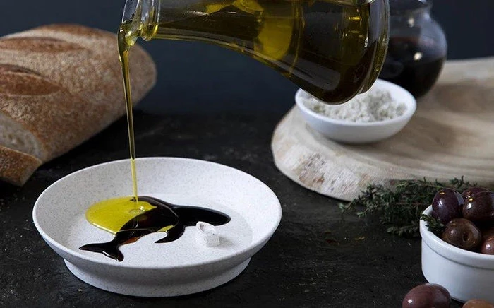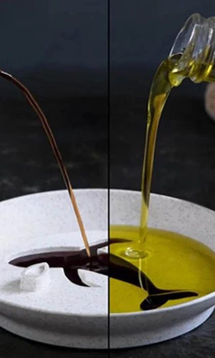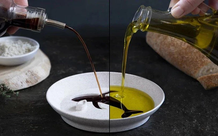 Oil and vinegar may not mix, but they do make a delicious dressing! Pour some balsamic vinegar, add olive oil, and then take a piece of fresh bread for a dip!