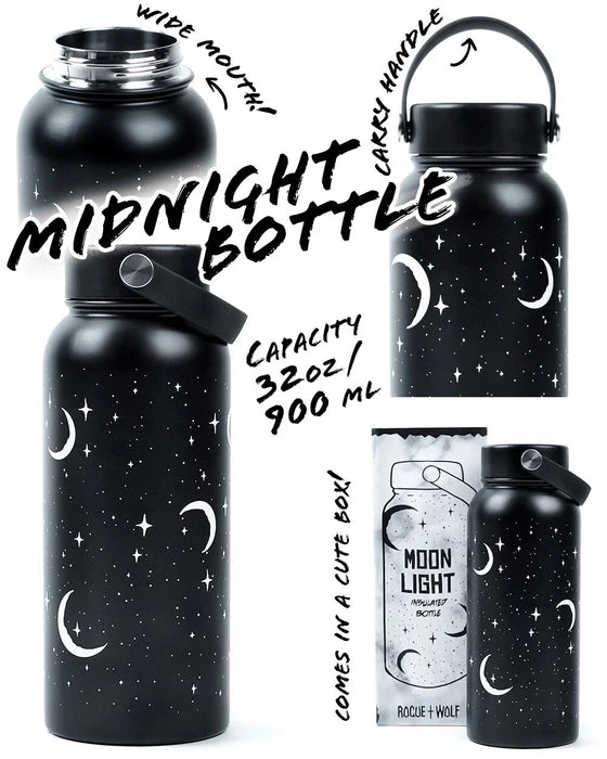 Keep going all day long with our Moonlight Insulated Bottle. Holds an astronomical 900ml, so you can keep up those caffeine levels at the office or stay hydrated at the gym! Perfect for busy witches that want to be prepared for a long day ahead!