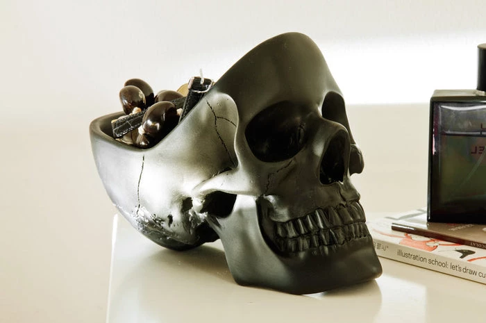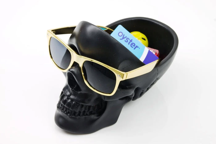 This skull is an awesome addition to any entryway, mantelpiece or alter! With plenty of room to store your keys, glasses, phone, watch, loose change, and the contents of your pockets… as we all know it can be difficult keeping all these things in mind. Get organised, keep your paraphernalia in a skull, freeing up space in yours. The key to good organisation is to keep everything in one place, so stay tidy, fill your head with stuff before you lose it. Very sturdy and quite heavy!